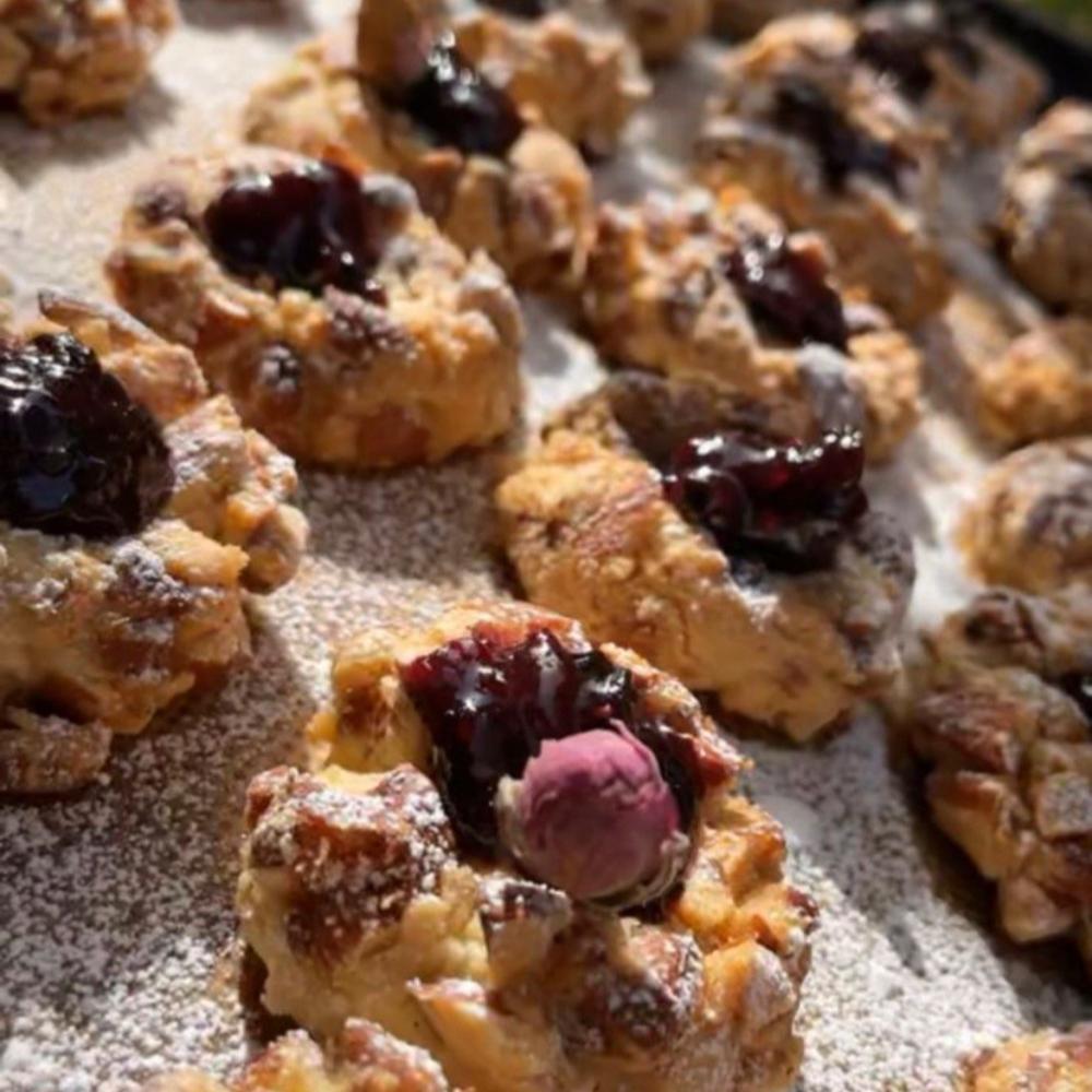 بسكوت اللوز مخبوز بدقة وعناية منزلية، يتميز بقوامه الهش ونكهته الغنية بالمكسرات.