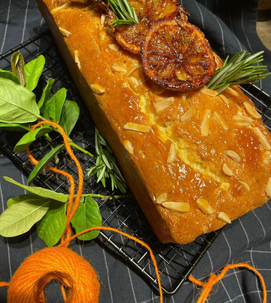 - اسم المنتج: باوند كيك البرتقال الانجليزية الطرية مع شرائح اللوز المقرمشة.